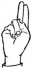 На ћирилици написано ДЕНИС КЛИНЦОВ састоји се из 12 слова [?]. Исписано ћириличном једноручном азбуком за глувонеме: